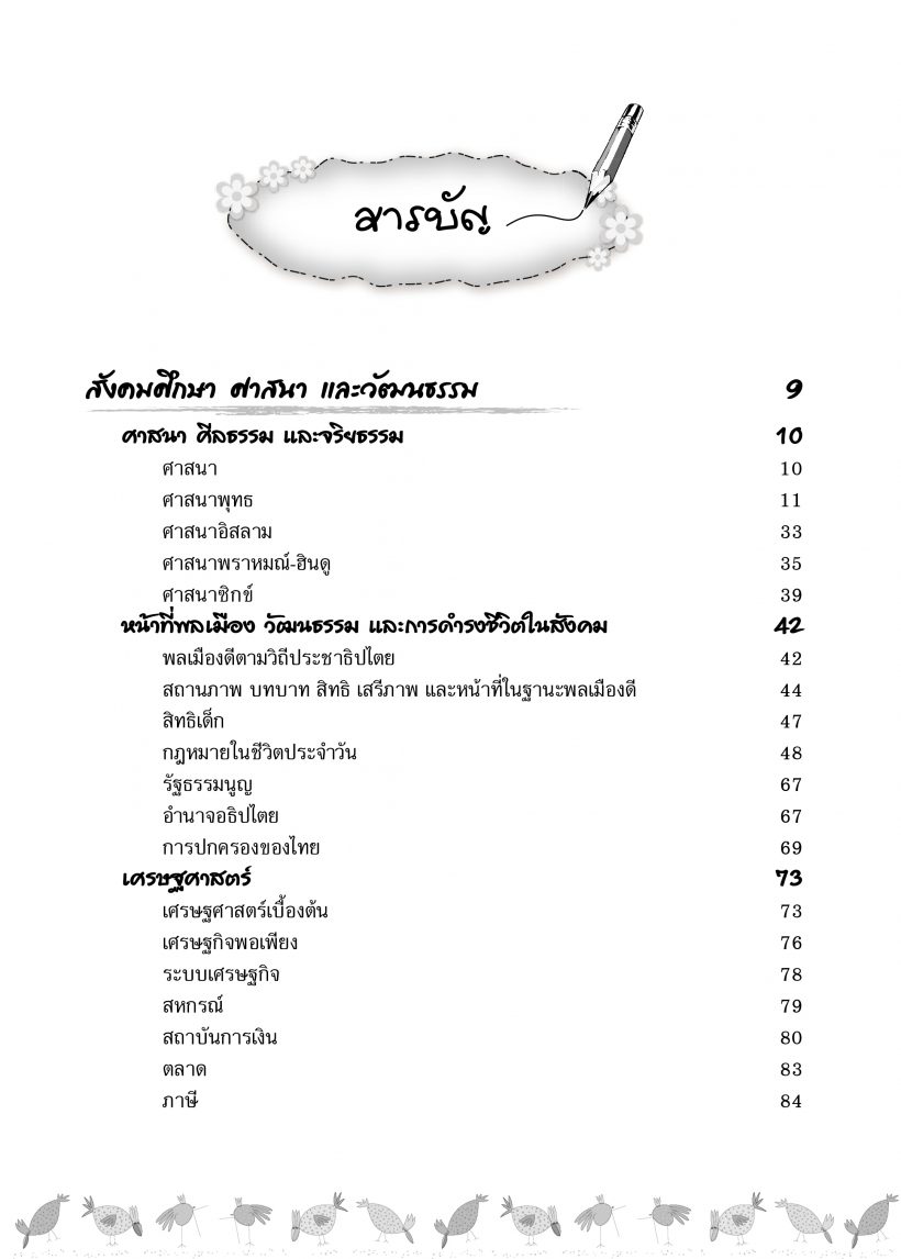สรุปเนื้อหาสำคัญของกลุ่มสาระการเรียนรู้วิชาสังคมศึกษา ศาสนา และวัฒนธรรม วิชาวิทยาศาสตร์ วิชาภาษาไทย วิชาคณิตศาสตร์ และวิชาภาษาต่างประเทศ พร้อมแบบทดสอบ เฉลย และเก็งข้อสอบ O-NET (ภาษาไทย วิทยาศาสตร์ คณิตศาสตร์) ระดับชั้นประถมศึกษาปีที่ 6 ไว้อย่างครบถ้วนสมบูรณ์ สำหรับเป็นแนวทางในการเตรียมความพร้อมของน้อง ๆ เพื่อสอบเข้าศึกษาต่อในระดับชั้นมัธยมศึกษาปีที่ 1 และเตรียมสอบ O-NET