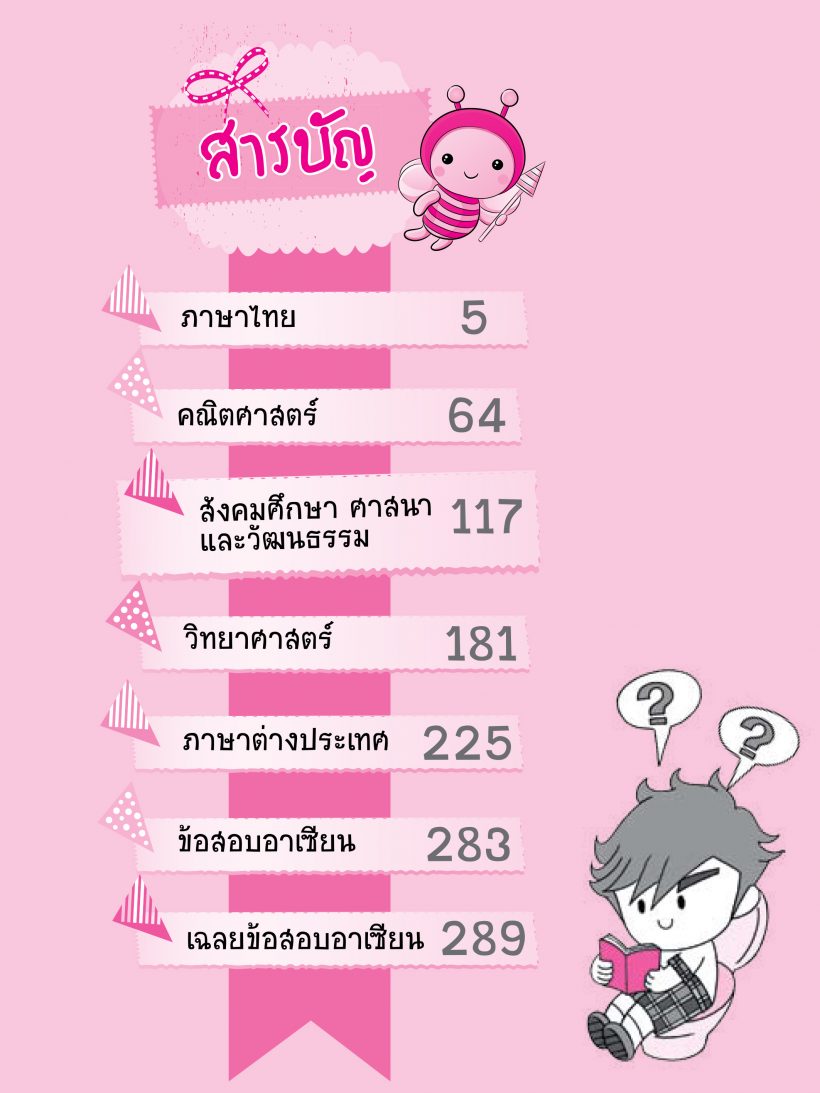 สรุปเนื้อหาทบทวนบทเรียนและมีแบบทดสอบพร้อมเฉลยที่ครอบคลุมเนื้อหา 5 วิชาหลัก และความรู้ทั่วไปอาเซียน ได้แก่